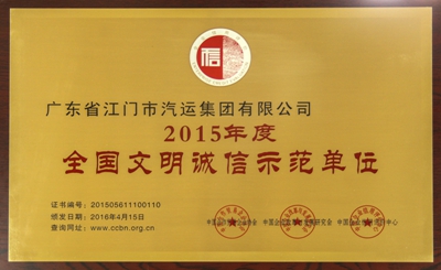 4月15日,集团公司荣获2015年度“全国文明诚信示范单位”。“2016中国企业科学发展大会暨第七届中国企业诚信盛典”是由中国合作贸易企业协会、中国企业改革与发展研究会以及中国企业信用评价中心联合举办。中国企业诚信盛典在国家工信部、商务部、国资委等部委的指导下,已经连续举办了六届,是表彰诚信企业的年度重大活动,2016年是第七届。集团公司作为全国道路旅客运输一级企业,2004年至2015年连续十二年入选中国道路运输百强诚信企业。此次活动,市汽运集团有限公司组织的“以旅客为焦点 诚信经营优质服务”的企业诚信建设报告获得了该奖项。(集团公司办公室)