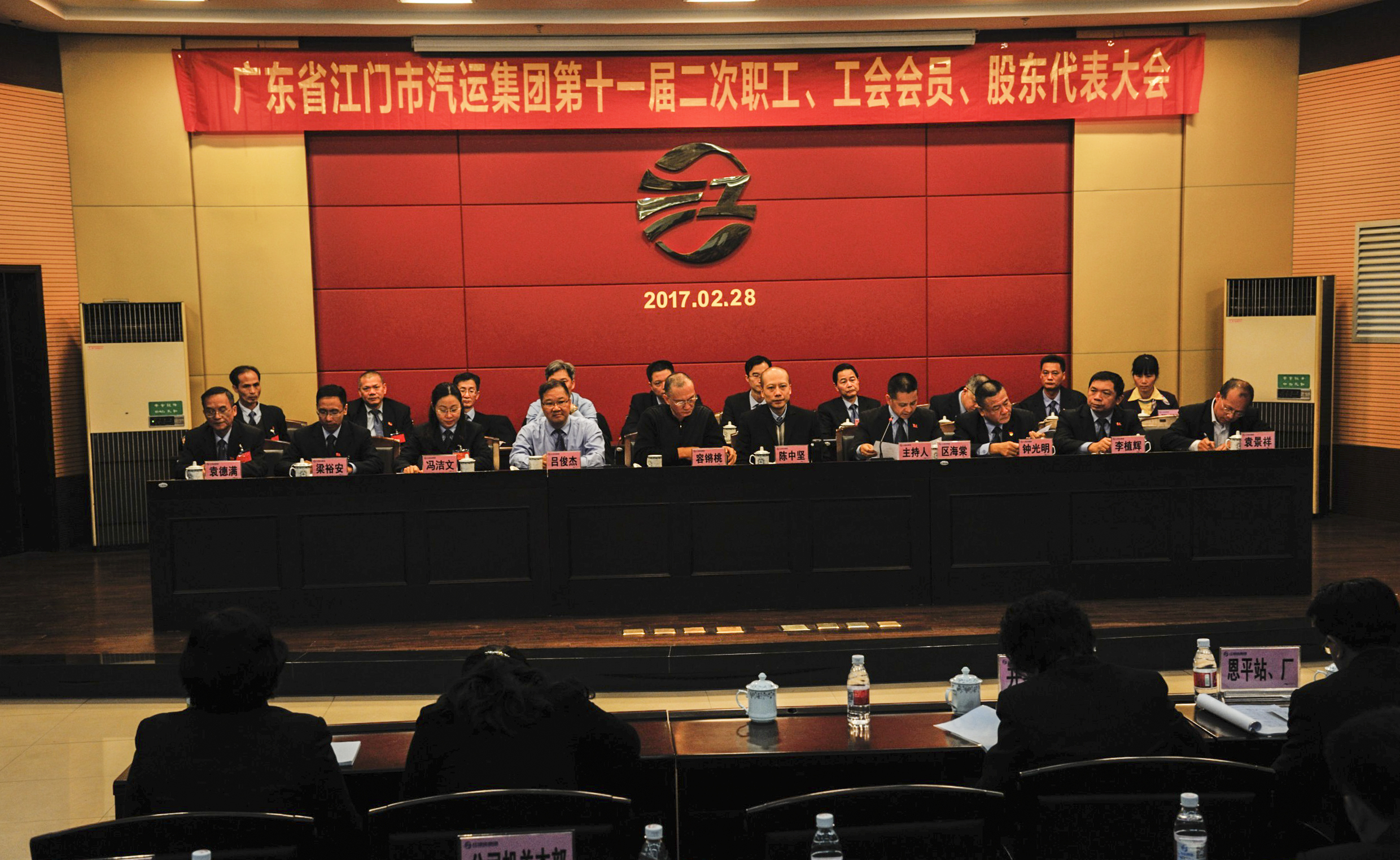 2月28日,广东省江门市汽运集团有限公司第十一届二次职工、工会会员、股东代表大会于2017年2月28日在江门汽车总站会议大厅隆重召开。出席会议的167名代表欢聚一堂,共商企业发展大计,为实现集团公司2017年的经营目标进言献策。市总工会副主席罗荣华、市国资委副主任容锵桃、市建设集团董事长陈中坚等领导出席了大会。