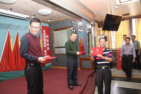 随后,广东交通职业技术学院领导为优秀毕业生、优秀函授生、优秀班干颁奖,集团公司领导为获得2017年上学期奖学金学员颁奖。