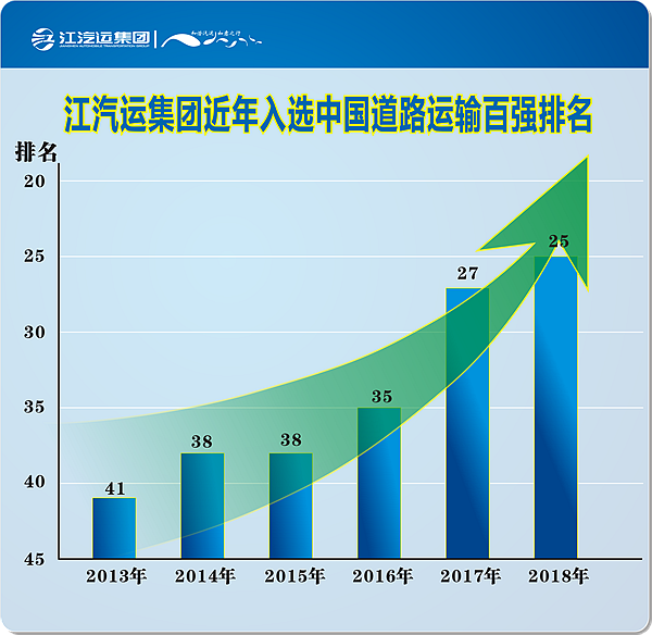 广东省江门市汽运集团有限公司近年来在市委市政府、市交通运输局、市国资委、市交建集团的领导下,以生产经营为中心,以安全管理为基础,强化管理,攻坚克难,改革创新,开拓进取,保持了企业和谐稳定发展。2018年再度成功入选“中国道路运输百强诚信企业”,全国排名第 25位,较上一年度的第27 位提升 2 位。排名的上升显示江汽运集团的规模实力、竞争能力、行业影响力及诚信经营活动均呈现稳步增强的势头。
