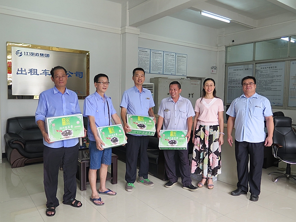 7月17日,集团公司党委副书记、工会主席冯洁文到集团下属出租车分公司慰问奋战在高温下的企业职工,为一线员工送去夏日清凉。
