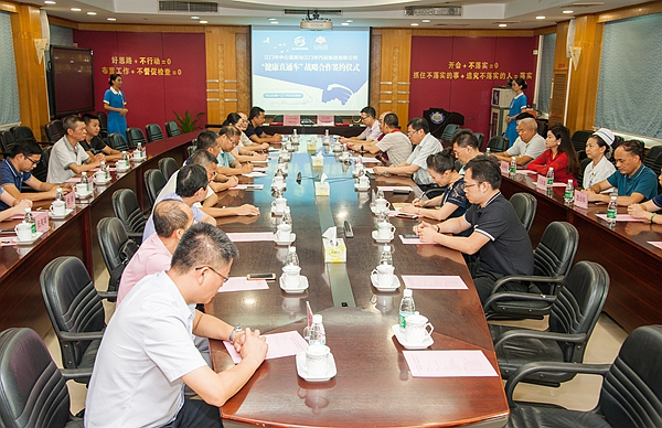 9月7日上午,江汽运集团与江门市中心医院在中心医院仁济楼二楼会议室举行了简短而隆重的“健康直通车” 战略合作签约仪式。江汽运集团党委书记、董事长吕俊杰,党委副书记、总经理区海棠,党委副书记、工会主席冯洁文,顾问钟光明和相关部门负责人、江门公汽公司主要领导,以及市中心医院院长、党委副书记李宇明,纪委书记陈永源、副院长周卫华、副院长黄炎明和主要部门负责人共同出席了签约仪式。市中心医院院长李宇明、江汽运集团总经理区海棠在仪式上分别作了讲话。市中心医院院长李宇明、江汽运集团董事长吕俊杰共同签署了“健康直通车”战略合作框架协议。