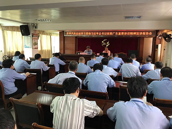 11月30日下午,开平汽车总站召开学习习近平总书记视察广东重要讲话精神宣讲报告会。该站全体党员、入党积极分子和中层干部参加会议。报告会邀请了开平市委宣讲团成员、宣传部副部长何永贺授课。