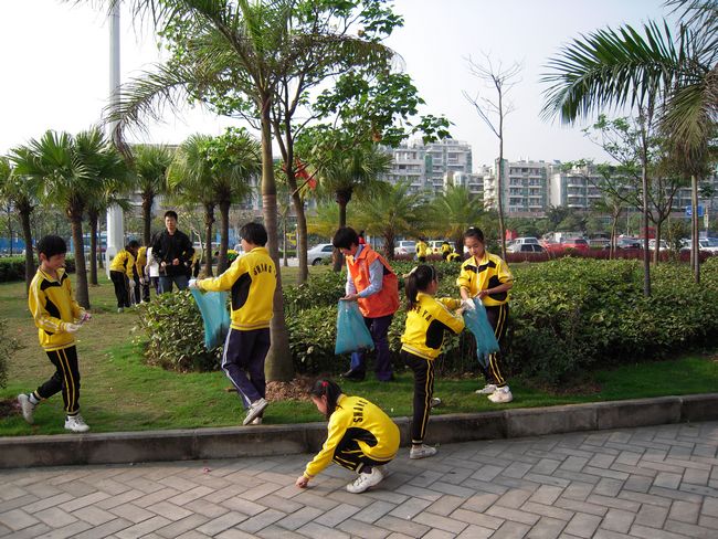 3月21日,新会区尚雅学校五年级40多名学生在老师的带领下来到新会汽车总站学雷锋做好事。他们联合汽车总站10多名义工,对汽车总站站场内外的环境卫生进行清理。