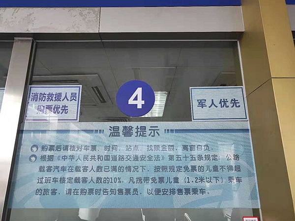 该总站在售票服务窗口醒目位置设置张贴了“消防救援人员优先”标牌,提示过往旅客优先礼让“消防救援人员”购票、乘车,让“消防救援人员”切实享受到社会的尊崇、市民的礼让、职业的荣誉。