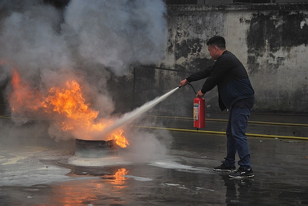此次消防技能实操演练内容包括消防栓的使用和模拟油桶“火灾”扑救两部分。首先由总站义务消防队队长伍伟恩讲解4Kg和35KgABC干粉灭火器的使用知识,再由总站义务消防队进行消防栓操作示范和灭火器灭火示范,然后参演员工按顺序轮流使用4KgABC干粉灭火器进行油桶“火灾”扑救实操演练。通过实操演练,让员工熟练掌握灭火器的使用方法,增强消防安全意识,提高火灾自救能力。