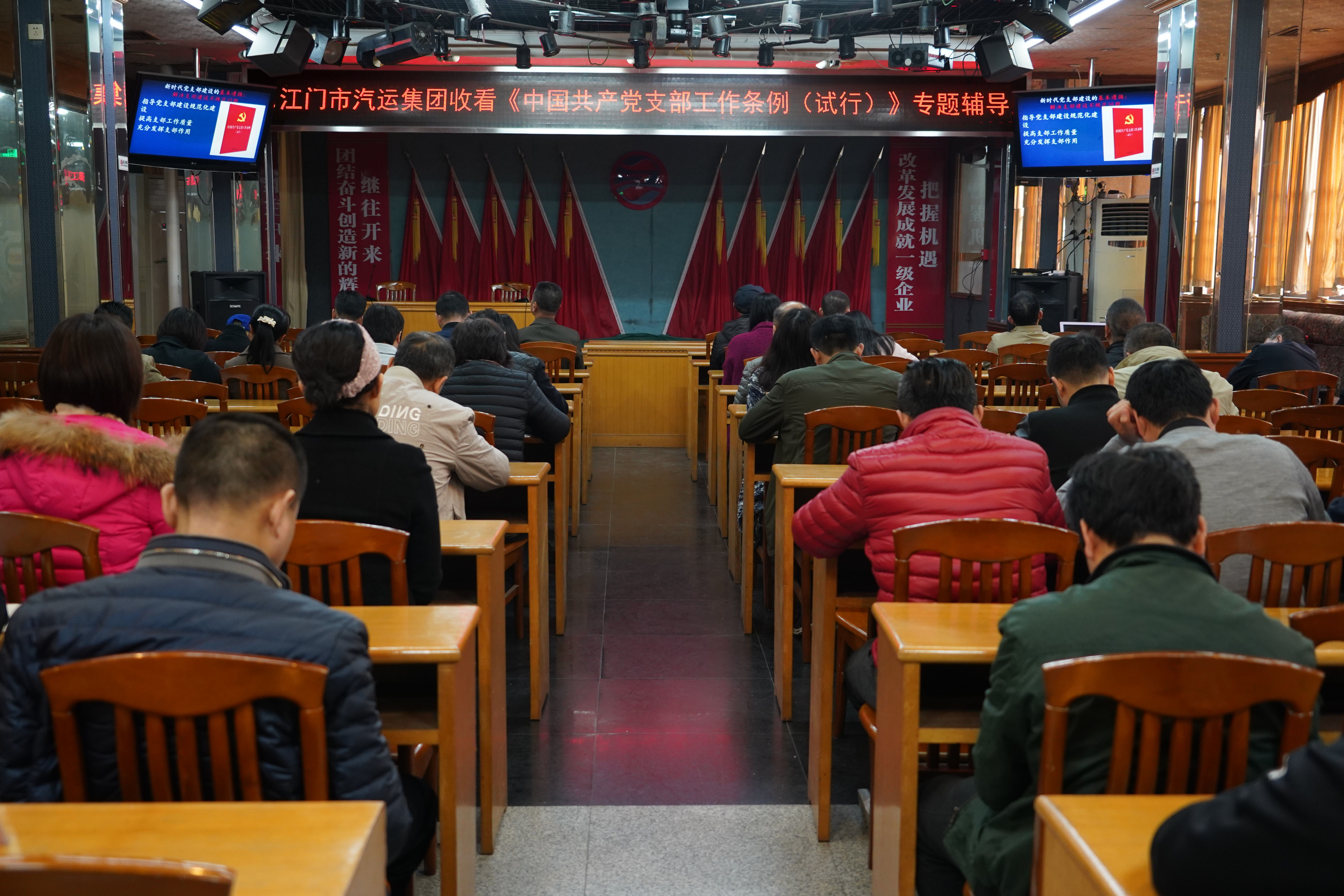 为深入学习贯彻《中国共产党支部工作条例(试行)》,1月8日下午,江门市汽运集团党委组织机关直属全体党员集中收看了《中国共产党支部工作条例(试行)》专题辅导。