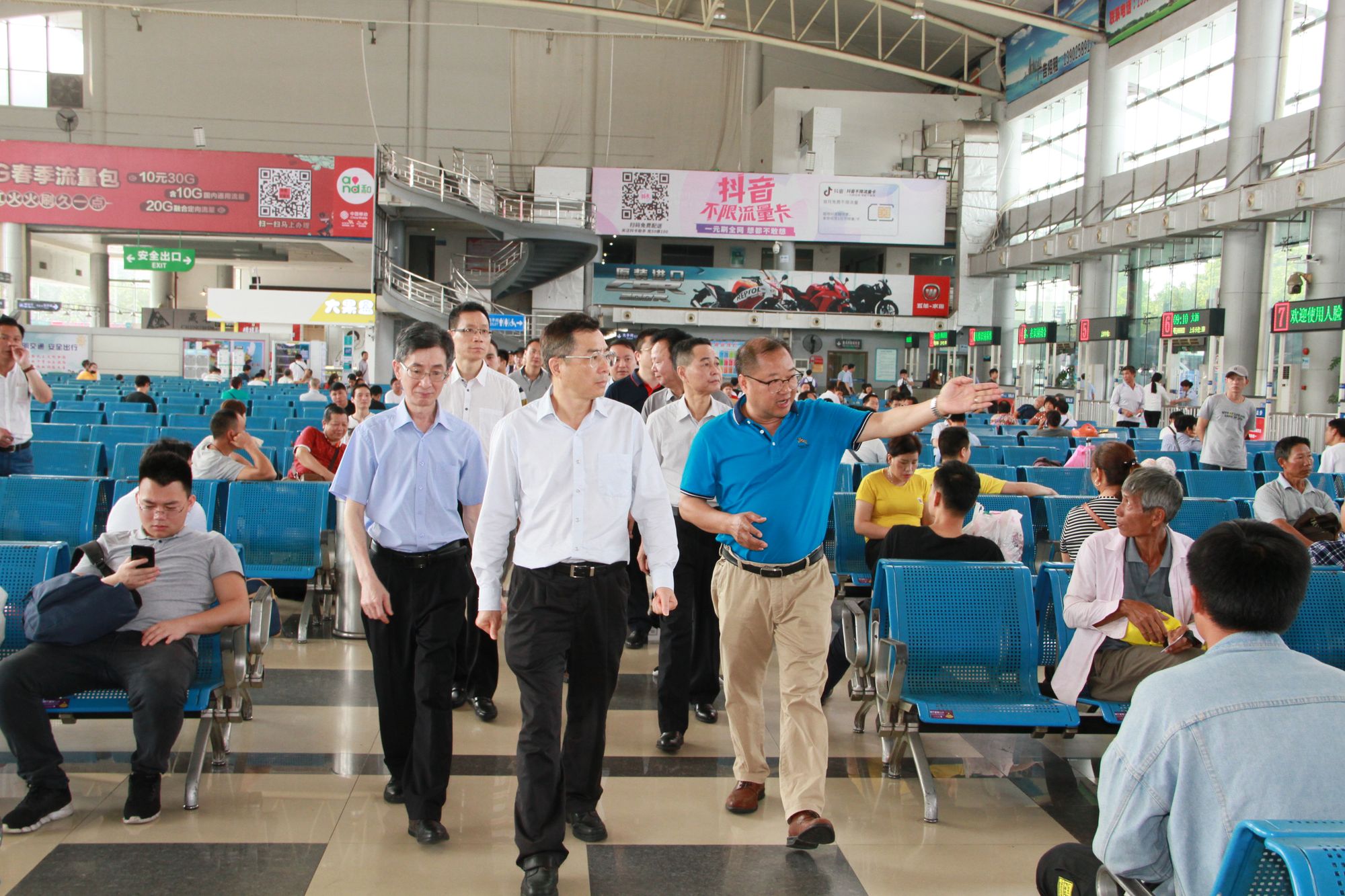 蔡德威副市长一行首先来到江门汽车总站进行实地调研,了解客运服务、站场、安全管理等情况,并在江门总站公交站场调研公交设施配套、公交接驳等情况。