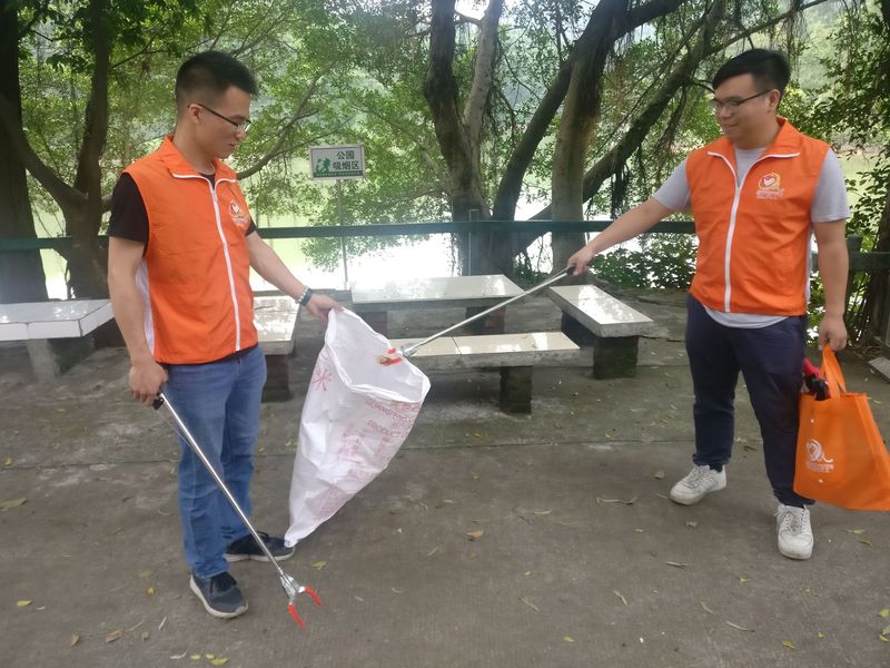 活动中,团员志愿者们身穿义工马甲,手拿钳子、垃圾袋等工具,认真细致地拾取公园沿途上的垃圾。一路上,他们有的拾取地面上丢弃的烟头,有的弯腰拾取水沟中的塑料袋,有的拾取山边灌木丛中的果皮、纸屑等,在公园各处留下了一抹抹辛勤的“橘色”身影。