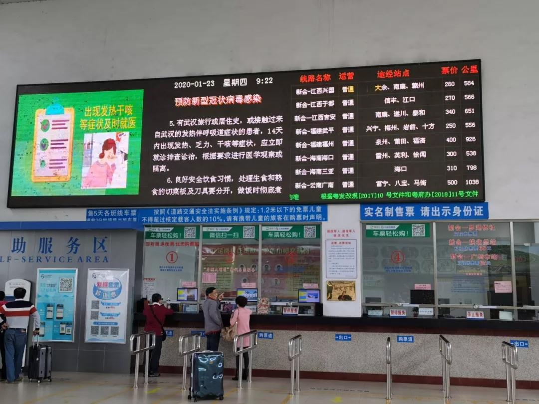新会汽车总站利用售票大厅电子显示屏播放新型冠状病毒相关宣传内容,印制有关健康防控知识宣传单张供旅客取阅,在站场内显眼位置张贴相关海报及横幅,增大宣传力度。