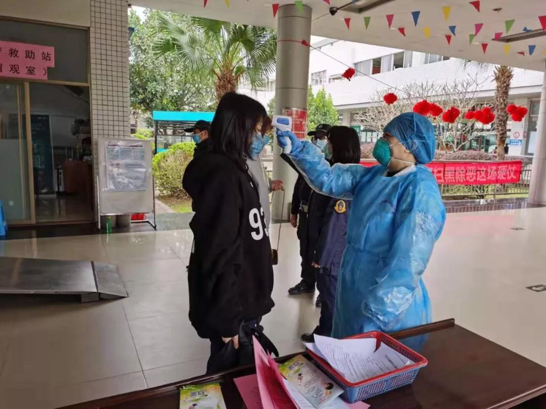 购入体温测量仪对进站乘车旅客及在新会总站下车的旅客进行体温测量,并登记好从湖北省前往新会的旅客资料,以备日后跟踪;在大厅体温测量处设置医疗救助站(留观室),当发现发热(≧37.3℃)的旅客时,向其派发一次性医用口罩并指导佩戴,填写相关登记表,医疗站医务人员对发热旅客询问既往14天内的外出史,或是否有14天武汉接触史。