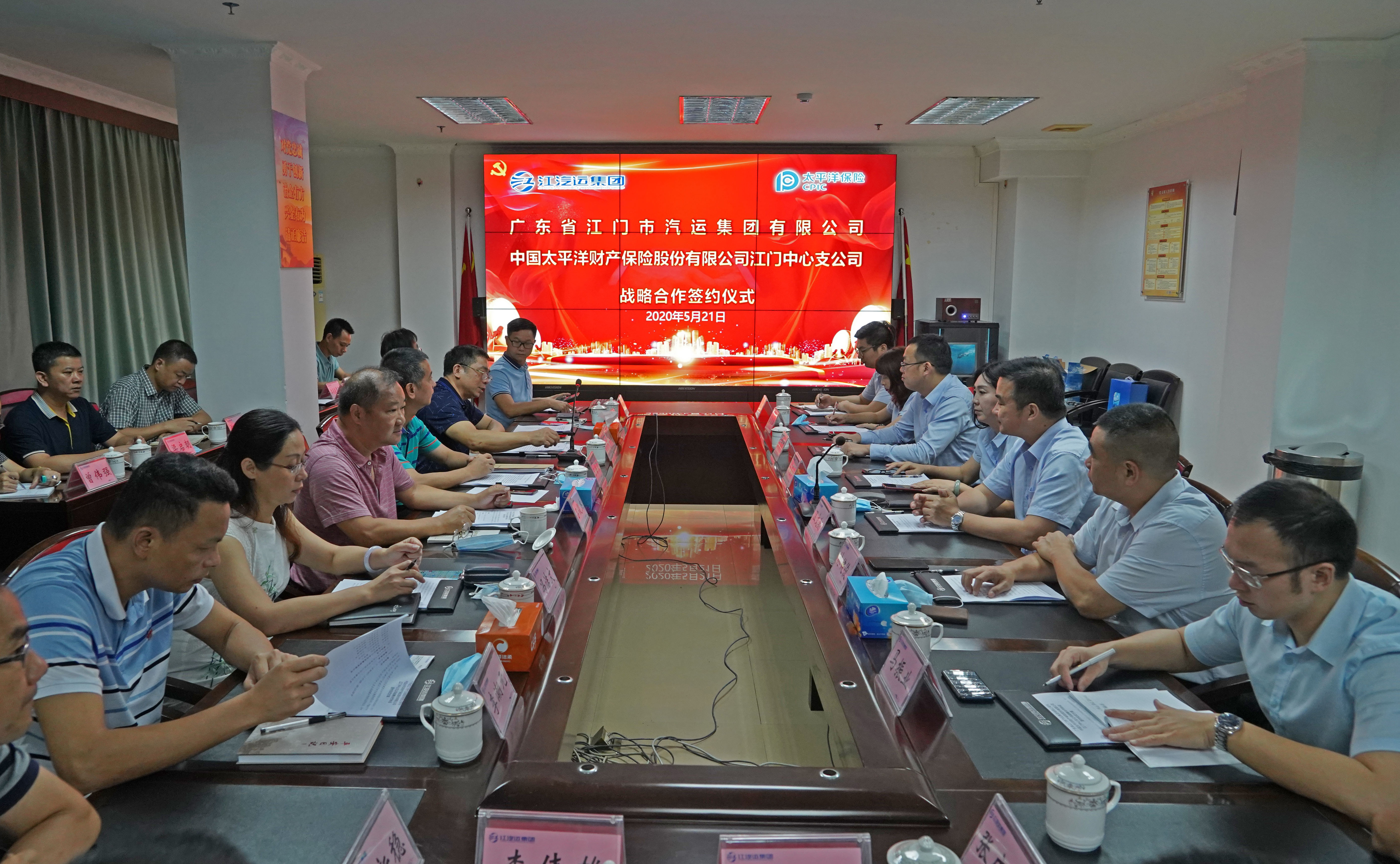 5月21日,江门汽运集团与中国太平洋财产保险有限公司江门中心支公司(以下简称太保江门中支)在运通大厦签署战略合作协议。江门汽运集团党委书记、董事长吕俊杰,党委副书记、总经理区海棠及太保江门中支党委书记、总经理温文翔、副总经理黄湛弘等领导,以及双方的中层干部参加了签约仪式。