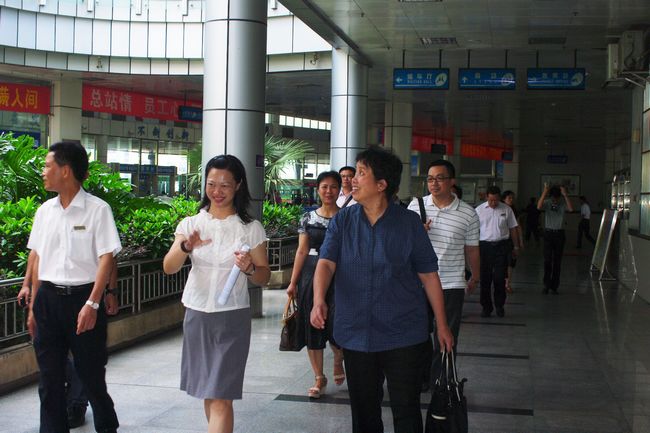 6月5日,广东省交通运输厅科技处王立红副处长、林陆荣副调研员等一行来到鹤山汽车总站,检查我司节能减排示范项目的进展情况。江门市交通运输局赵瑞玲副局长、公交科伍昌平科长、周桂洪副科长、集团公司电算中心朱卫光副主任、公汽公司冯敬佳副总经理及鹤山汽车总站有关领导同志陪同检查并介绍了有关情况。