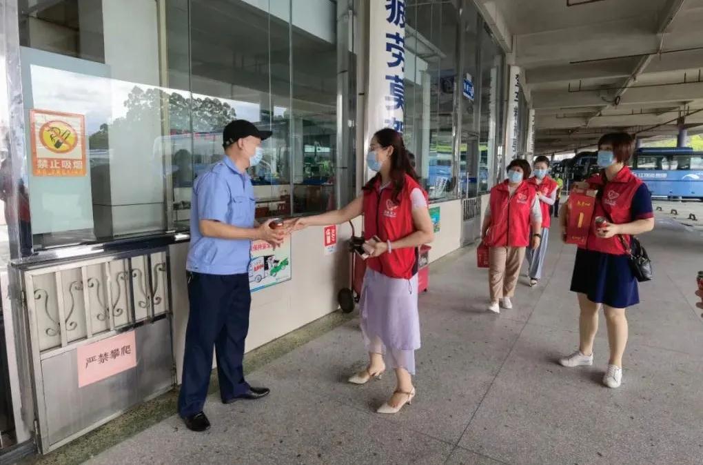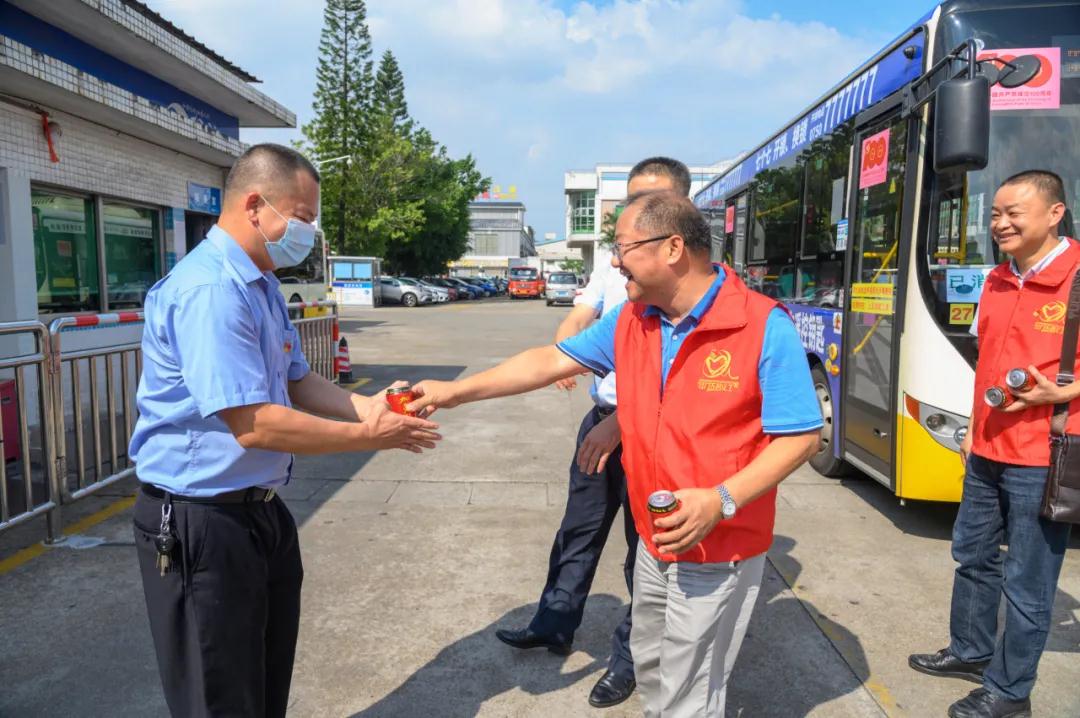近日,江门文旅交通集团公司党委书记、董事长吕俊杰,党委副书记、总经理区海棠,党委副书记、工会主席冯洁文及其他领导班子成员,分别带领公司慰问组到各基层一线,将清凉饮料送到员工的手上,并叮嘱员工注意身体,做好防疫工作,继续为旅客提供优质服务。
