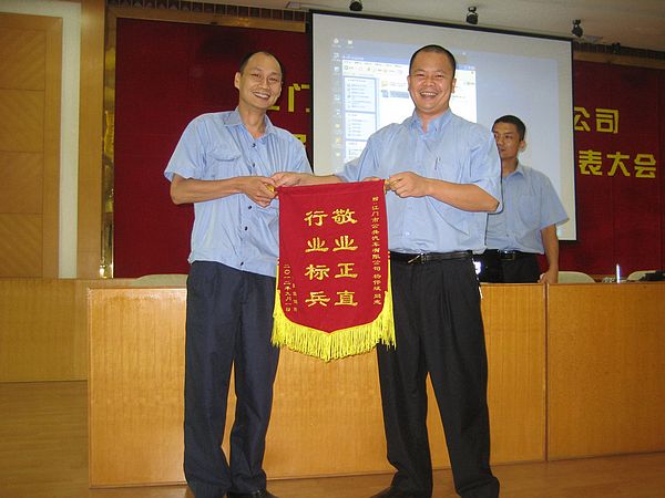 2012年9月2日上午9点30分左右,江门边防检查部队谢警官一行,来到江门公汽第二分公司外海站向站务送来一面锦旗,表示感谢10路线司机杨伟斌拾金不昧的精神。旗面写着“敬业正直 行业标兵”,谢警官把感激之情浓缩在这八个字里。原来,谢警官的家人于2012年9月1日上午乘坐10路公交车从江海路电化厂站到蓬江大桥脚浮石市场去买菜,付费时才发现手提袋不见了,细想才怀疑遗漏在车上……