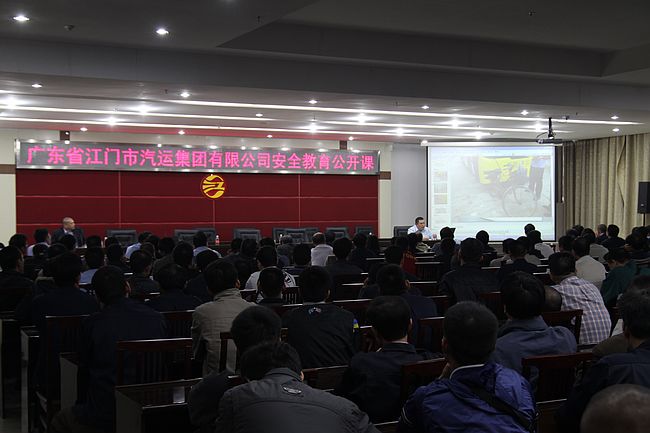 11月26日晚上8:30时,在新会汽车总站会议室召开安全教育公开课,集团公司总经理许爱民、副总经理钟光明出席了公开课。各汽车总站、塔山车站、江门公汽公司、新会公汽分公司、直属运输单位的安全部门负责人、安全员以及新会汽车总站的驾驶员200多人参加了公开课。