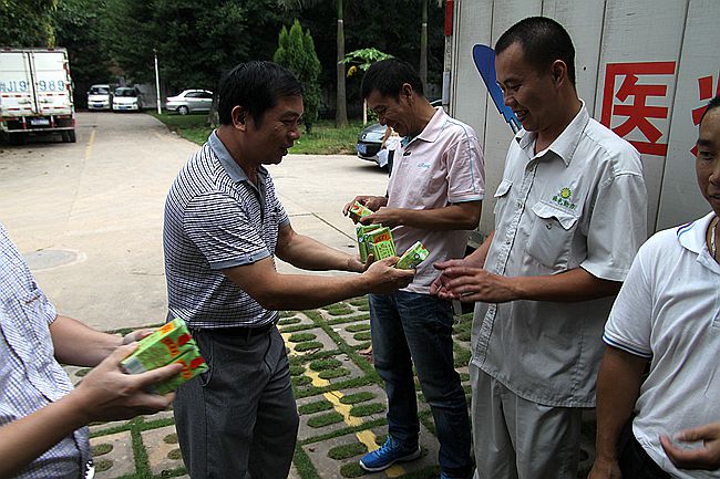 炎热夏日即将到来,在路上的驾驶员承受高温酷暑天气。6月9日下午,骏安物流有限公司执行董事李植辉、总经理李锦盛及经营班子向驾驶员们派发消暑清凉饮料,同时向驾驶员再三叮嘱要注意安全、注意休息,保重身体,开好安全车。(办公室)