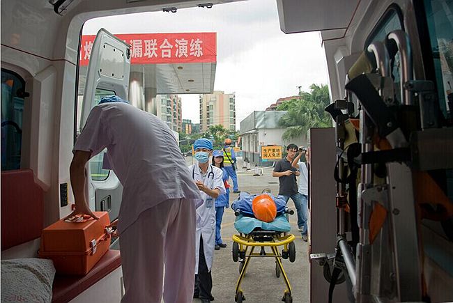 2014年6月26日下午3点30分,联合演练开始,麻园加气站操作工正在进行卸车作业,此时储罐区突然冒起白雾,操作工查看后发现储罐根部阀泄漏,无法关闭阀门,现场有低温液体喷溅,无法控制。发生险情后,工作人员立刻展开了救援工作,一方面工作人员根据风向立马疏散正在麻烦站办公的汽车修理厂和办公楼人员,设立警戒区;另一方面利用站区消防栓进行喷淋,控制和降低燃气泄漏浓度,并迅速将险情上报。这时消防部队消防车、交警部门交通指挥车、江门急救中心的急救车及时赶到了现场,进行增援戒备。经过一系列的堵漏抢修工作,险情终于得以排除,演练圆满结束。