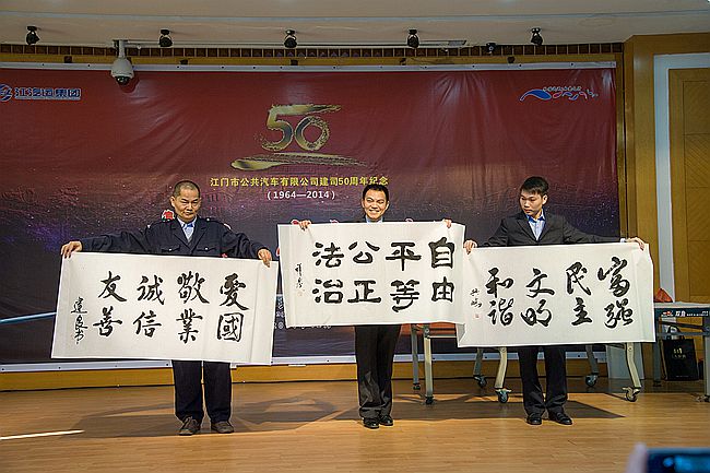 会上,江门公汽公司总经理吕国文简要回顾了该公司建司50年以来的建设和发展历程,并代表公司领导班子向为企业奉献了青春和汗水的退休前辈、全体员工表示敬意。集团公司总经理区海棠作了热情洋溢的致辞,区总指出,纪念大会不仅是对公司过去的回顾,更是公司未来发展的新起点,希望公汽公司在企业新一轮的发展中,再接再励,凭着进取精神和经营智慧,勇往直前,为企业、为员工创造出更美好的未来。