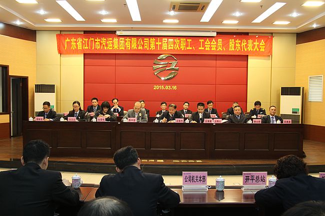 3月16日,广东省江门市汽运集团有限公司第十届第四次职工、工会会员、股东代表大会于2015年3月16日在江门汽车总站会议大厅隆重召开。出席会议的164名代表欢聚一堂,共商企业发展大计,为实现集团公司2015年的经营目标进言献策。江门市总工会副主席罗荣华、市国资委副主任、建设集团董事长陈中坚应邀出席大会并讲话。