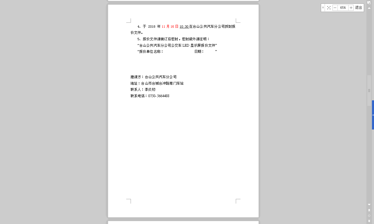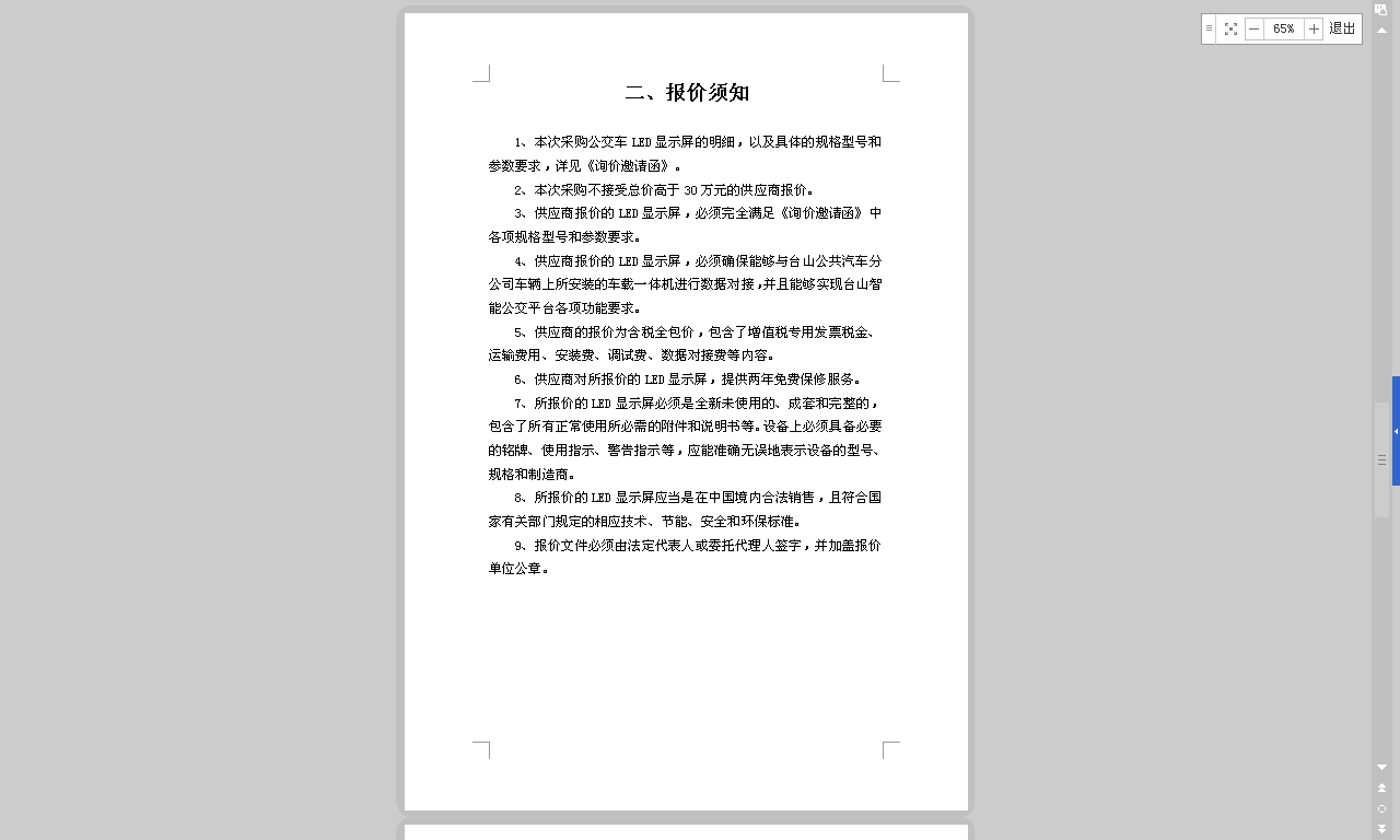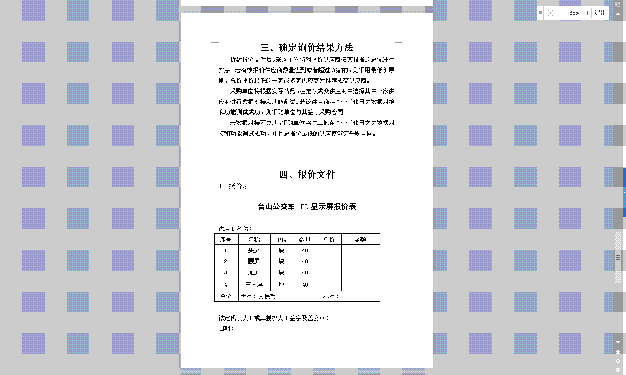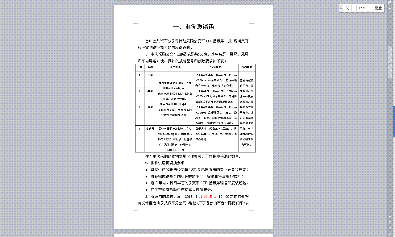 【台山公汽采购公交车LED显示屏询价文件】 |